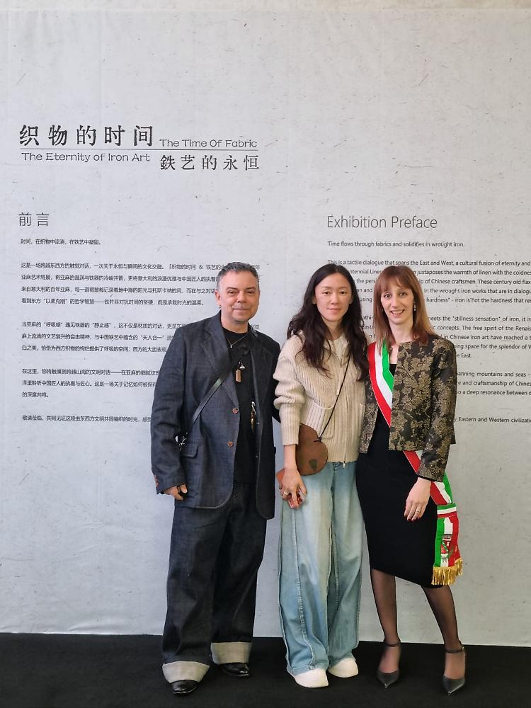 Un evento di grande risalto che rimarrà in esposizione fino al 10 novembre e, come si legge nei pannelli che introducono la mostra, accosta il calore e la tradizione del lino alla freddezza del ferro «in una fusione culturale che è dialogo tra Oriente e Occidente e che combina l'eleganza romantica dell'Italia con la perseverante maestria degli artigiani cinesi del ferro. Vi invitiamo a partecipare a questo tempo intrecciato tra civiltà orientali e occidentali e a percepire il profondo e toccante equilibrio culturale tra eternità e momento».