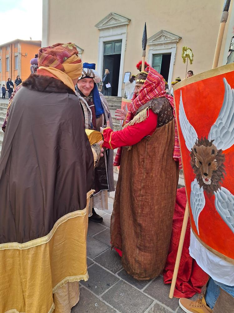 OSTIANO - La processione dei Re Magi nel giorno dell’Epifania ha chiuso le festività ostianesi. Il corteo, guidato dai tre Re venuti da Oriente assieme ai bambini vestiti da pastori e da angeli, è partito dall’oratorio, ha attraversato il paese fino alla Porta Spinata, dove ha incontrato Re Erode, ed è poi arrivato in chiesa per adorare la Sacra Famiglia. Dopo la consegna di oro, incenso e mirra, Don Jonathan Guicciardi ha fatto una breve riflessione sull'importanza della famiglia e dei genitori sull'educazione dei figli.