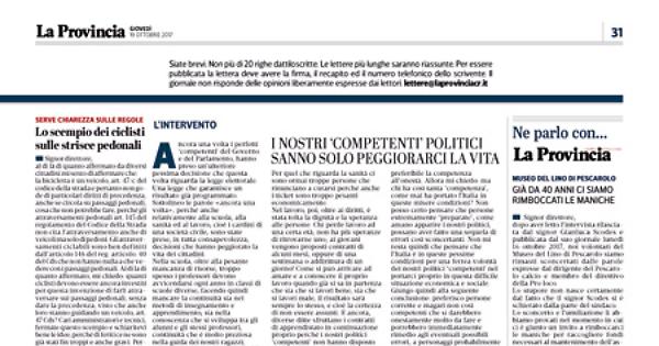la bicicletta è un veicolo, art. 47/c del codice della strada e pertanto non gode di particolari diritti di precedenza, anche se circola su passaggi pedonali, cosa che non potrebbe fare, perché gli attraversamenti pedonali art. 145 del regolamento del Codice della Strada non cita l’attraversamento anche di veicoli ma solo di pedoni. Gli attraversamenti ciclabili sono ben definiti dall’articolo 146 del reg. articolo. 40 del Cds che non hanno nulla a che vedere con i passaggi pedonali. Al di la di quanto affermato, mi chiedo: quanti ciclisti devono essere ancora investiti per questa invenzione di farli attraversare sui passaggi pedonali, senza dare la precedenza, visto che anche loro stanno guidando un veicolo, art. 47 Cds? Cari amministratori e tecnici, fermate questo scempio e schiaritevi bene le idee, perché di feriti ce ne sono già stati fin troppi e anche gravi. Personalmente ho evitato un velocipede su passaggio pedonale per pochi centimetri, vicino all’ospedale, ma è stato investito dal veicolo che mi seguiva. La norma deve essere chiara e fatta a sensi di legge per la garanzia di tutti, automobilisti e ciclisti compresi, senza indugi,e senza ma. Allo stato esiste solo una grande confusione, che deve essere risolta al più presto.