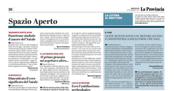 da qualche tempo pare che, a sinistra, si sia intensificata una sorta di caccia ai fantasmi; il più gettonato pare essere il fascismo. A livello parlamentare - con tutte le urgenze contemporanee che il Paese dovrebbe affrontare - ha ritenuto di occuparsene l’onorevole Fiano (Pd); pure dalle nostre parti vi è chi non vuole essere da meno: mi riferisco a coloro che - anche a Crema - vorrebbero notificare al defunto Benito Mussolini la delibera di revoca di una cittadinanza onoraria - da contestualizzare storicamente - di cui più nessuno si curava e ricordava.