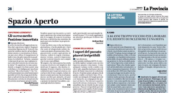 Anzitutto le auguro di trovare presto un lavoro. Purtroppo, di casi come il suo in Italia ce ne sono tanti. E’ inconcepibile che a 44 anni ci si trovi estromessi dal mondo del lavoro. Così come trovo assurda la richiesta di un diploma per fare il lavapiatti: anche chi non ne possiede uno deve avere il diritto di guadagnarsi onestamente la vita. Il reddito di inclusione deve essere uno strumento provvisorio per aiutare chi è in difficoltà, ma senza una seria politica sul lavoro rischia di diventare solo carità. Tutto ciò non è dignitoso.