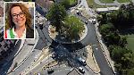 Il nuovo rondò di Largo Moreni e la coda a Croce Santo Spirito. Sotto, la sindaca di Castelvetro Silvia Granata
