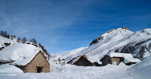 E' nevicato ancora parecchio sulle Alpi e lo spicchio di montagna piemontesedove si estendela conca del Devero è ancora ben innevato.Anche in aprile, dunque, ci sipuò quindi dedicare ad una bella ciaspolatapanoramica che, con poca fatica,consente di andare alla scoperta diun alpeggio di confine poco conosciutoma davvero incantevole.All'Alpe Devero si arriva oggi con unatortuosa strada che si inerpica da Bacenoe Goglio, nel fondovalle, e che fucostruita negli anni Sessanta a serviziodi alcune opere idroelettriche. Primadi questa strada, e di alcuni impianti afune poi smantellati, raggiungere l'AlpeDevero era quasi un'impresa e perquesto l'alpeggio rimaneva isolato diversimesi all'anno. D'estate fungevada pascolo per le mandrie che venivano poi ricondotte a valle nei mesi più freddi. Si spiega così l'origine di alcuniagglomerati di antiche case da monte,perfettamente ristrutturate, dal gustodavvero evocativo: Piedimonte, sullependici del monte Cazzola, e Crampiolo,sulla mulattiera per la diga di Devero.Tutt'attorno si ergono cime che superanoi tremila metri di quota: spiccail Cervandone, che domina ogni visualeed è il simbolo dell'alpeggio. Verso sud invece si stagliano i contraffortirocciosi dell'Helsenhorn.Dalla località Ai Ponti (1634 mslm) sicammina, ciaspole ai piedi, seguendola puntuale segnaletica escursionistica:inizialmente si sovrappongono letracce del percorso 1 (che termina aCrampiolo, meta di una irrinunciabiledeviazione sulla via del ritorno) e del percorso 3, da seguire fino all'alpeggiodi Sangiatto. Dopo un piacevole trattonel bosco si raggiungono le poche baitedi Corte d'Ardui (1760 mslm), microinsediamentorurale ai piedi delCervandone. Si inizia qui a salire lungoun pendio abbastanza ripido e tornandopresto nel bosco fino ad incontrareuna nuova radura. Conpoche difficoltàdi orientamento si prosegue tagliandoa mezza costa la montagna perarrivare in corrispondenza di una vastaconca: voltando lo sguardo a sinistrasi intuisce un facile valico che ospitale poche malghe ed i rustici ricoveriche costituiscono l'Alpe Sangiatto(2010 mslm). Si tratta di una destinazioneda ricordare anche quando la nevesi sarà sciolta: nei dintorni, infatti, sitrovano piccoli laghetti che nelle giornatepiù limpide offrono spettacolaririflessi. I più curiosi ed allenati possonoproseguire oltre e superare un altrofacile declivio oltre il quale si aprononuovi orizzonti verso nord.Il ritorno a valle avviene sul medesimopercorso di salita, ricordando però lapiacevole deviazione a Crampiolo(1767 mslm) dove si trova anche qualchecaratteristico punto di ristoro.