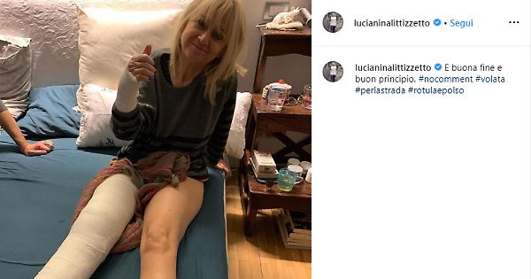 Capodanno a letto per Luciana Littizzetto. E' "volata per strada" facendosi male a ginocchio destro e polso. A rivelare la dolorosa disavventura è stata la stessa attrice torinese, spalla di Fabio Fazio in "Che tempo che fa", sulla sua pagina Instagram. In una foto la si vede seduta su un letto, con la gamba destra completamente fasciata o ingessata e il polso fasciato. "E buona fine e buon principio. #nocomment #volata #perlastrada #rotulaepolso", il commento aggiunto.