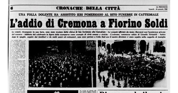 anto ai familiari. Fiorino Soldi ora dorme il sonno eterno nel piccolo cimitero di Cella Dati, in mezzo ai campi, quei campi sui quali da bimbo aveva scorazzato mentre il padre era intento al proprio lavoro di casaro nella cascina « Dosso ».