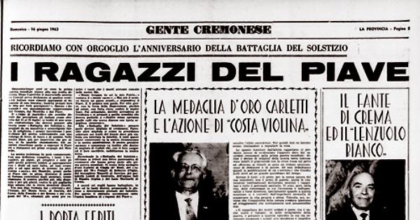 Ricordando la « Battaglia del Solstizio » offriamo ai lettori una breve panoramica di cremonesi che hanno preso parte alla prima guerra mondiale. Si tratta della medagli a d'oro Carletti di Cingia de' Botti, del « ragazzo del '99 » Pozzari di Robecco d'Oglio, del bersagliere Mazzetti di Sorcino, del portaferiti Lodoli di Genivolta, dell'alpino Salì di Ripalta Arpina e del fante Martinelli di Crema.