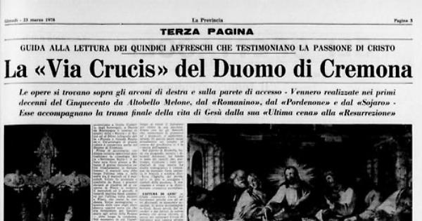 (...) Crediamo opportuno concludere la nostra guida ai dipinti della passione che arricchiscono il Duomo di Cremona con le brevissime sintesi biografiche dei quattro autori: Altobello Melone, il «Romanino », il Pordenone ed il Sojaro.