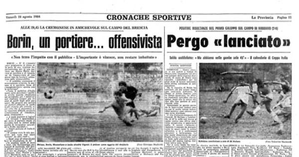 * Alle 20,45 la Cremonese in amichevole sul campo del Brescia. Borin, un portiere....offensivista. « Non temo l'impatto con il pubblico - L'importante è vincere, non restare imbattuto ».  Borno - E' il numero uno grigiorosso, si trova alle porte di una stagione importantissima per la sua carriera: ma Mauro Borin, portiere di mestiere e di vocazione, da l'impressione di non essere tipo da lasciarsi schiacciare dalle responsabilità.