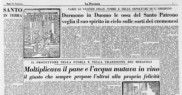 Sono questi i miracoli più noti del santo: nella primavera del 1195 in epoca di carestia, mentre veniva portata a casa di Omobono una cesta di pane, i poveri che stazionavano davanti alla sua porta si gettarono sul paniere e ne sottrassero le forme. Omobono che era presente ne provò gioia benché paventasse i rimbrotti della moglie ma accadde che all'ora della cena la dispensa fosse piena di candido pane al punto che la moglie neanche sospettò quel che era accaduto. Un'altra volta Omobono, mentre stava portando del vino ai contadini che lavoravano nel suo campicello fuori città, fu avvicinato dai poveri che gli chiesero da bere Egli cedette quanto aveva, e quando, sopraggiunta la moglie, questa diede la stura ai suoi rimbrotti, egli riempì il fiasco d'acqua, la benedì e con ciò la trasformò in vino. Sempre in altri episodi i poveri e la moglie, sono presenti a far vivo il contrasto tra egoismo e bisogno, che tempera il Santo col suo illuminato intervento. Nel corso del processo di canonizzazione d'Omobono Oberto prevosto di S. Egidio, e per 26 anni suo confessore, raccontò sotto il vincolo del giuramento a Papa Innocenzo III, di aver trovato più volte al mattino Omobono intento alla preghiera nella sua chiesa senza potersi render conto di come vi fosse entrato poiché aveva avuto cura di chiuderla e alcun altro poteva averne la chiave. Le porte si aprivano dovunque davanti alla, carità ed alla devozione di Omobono.