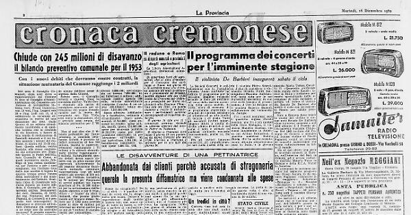 Esiste la stregoneria? No — si dirà — è pacifico ormai da secoli che la stregoneria non esiste. Tuttavia la superstizione degli uomini è ancora tale, che, ancor oggi di tanto in tanto, si torna a parlare di «malocchio», di streghe e di fattucchiere. Se n'è parlato anche nella udienza di ieri in Pretura, quando davanti al Pretore avv. Mario Ferrari, sono apparsi i coniugi Regina e Luigi di 25 e 28 anni, da Grontardo, imputati di aver attribuito a tal Rina «qualità istrioniche», secondo quanto dice il decreto di citazione.