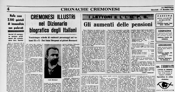 Gli ultimi due volumi, il IX e il X, del Dizionario Biografico degli Italiani, editi rispettivamente nel 1967 e '68, sono arrivati finalmente a Cremona. La nostra città vi è doviziosamente rappresentata, come già nei volumi precedenti: sono oltre venticinque gli illustri personaggi del nostro territorio che vi sono compresi.