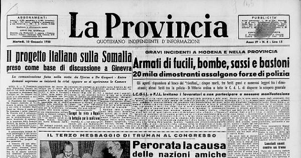 Secondo un comunicato della Prefettura, si apprende che mentre, sino da ieri, erano in corso tentativi per la soluzione della nota vertenza Fiom «Gruppo Orsi», si aveva motivo di ritenere dagli scambi di vedute fra il prefetto e i rappresentanti a ciò delegati nelle persone del sindaco di Modena, del presidente della Camera di Commercio e dell’on. Coppi, che si sarebbe giunti a una favorevole ed equa soluzione, stamane si cercava ancora di disciplinare di comune accordo con gli esponenti della C. d. L. le modalità per la soluzione dello sciopero già dichiarato, il che avrebbe facilitato l’appianamento della vertenza, all'improvviso, alcune migliaia di operai, fatti affluire anche dalla provincia e dalle zone limitrofe, il che dimostra la preordinazione del piano, assaltavano le forze di polizia presidianti gli stabilimenti in agitazione e precisamente: «Fonderie Riunite», «Zanasi», «Vignone» e alcuni stabilimenti della provincia, usando armi da fuoco, bombe a mano, martelli, sassi e bastoni. Le forze di polizia, per evitare di essere sopraffatte rispondevano al fuoco, dopo numerosi tentativi di persuasione riusciti vani.