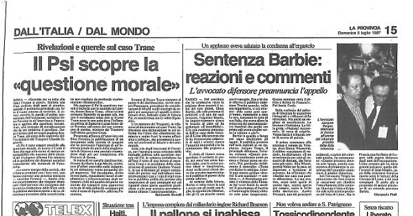 Francia non ha finito di frugare nelle pagine dolorose degli anni dell'occupazione. Lione prepara già un altro grande processo: quello dell'arresto di Jean Moulin, capo della resistenza francese morto sotto le torture della Gestapo di Lione, e dei suoi compagni. Si parla già a proposito di questo processo di un secondo processo Barbie.