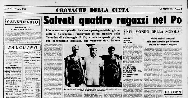 L'avventuroso episodio ha visto a protagonisti dei giovanetti di Cavatigozzi: l'intervento di un membro della "squadra di salvataggio di PS„ creata in questi giorni, con encomiabile iniziativa dal Questore dott. Palamà