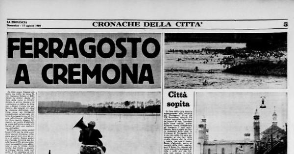 Di Ferragosto siamo andati lungo il Po, per la città, a goderci questa Cremona soleggiata, questi tetti rossi di cotto e di calore. Siamo andati per l'umida oscurità dei boschi, lungo il Po, ancora silenziosi, tra qualche ramo abbattuto e con le prime foglie secche. Sul fiume, a guardare l'acqua faceva male agli occhi: il Po cangiava al sole — come direbbe Pasternack — di volta in volta concavo e convesso, come una lamina d'acciaio. È nato così, quest'incontro con il Ferragosto; a metà di cronaca, a metà sentimentale.