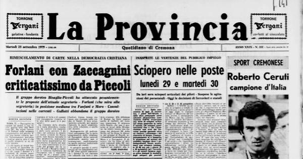 Il ciclismo cremonese, i fedelissimi, gli appassionati autentici di questo sport esultano: Roberto Ceruti, anni 22, è campione d'Italia su strada dei dilettanti. Ha indossalo la maglia tricolore domenica a Cassano Jonio, nel profondo sud, al termine di una gara durissima che ha provocato una selezione spietata. Dopo 25 anni il titolo italiano torna così idealmente a Cremona (l'ultima vittoria fu appunto di Alfo Ferrari). Abbiamo detto idealmente perchè Roberto corre, oggi, per una società milanese. Il rammarico che Ceruti non indossi la maglia di un nostro Club è l'unica nube che offusca questo giorno felice per il ciclismo di casa nostra.