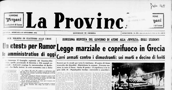Scontri per le strade per tutta la mattinata - Il centro di Atene sconvolto dai disordini - Ripristinata la censura - Estrema tensione in tutto il Paese - Scene di panico - Il coprifuoco è in vigore dalle 16 - Papadopulos incolpa «sovversivi e anarchici»