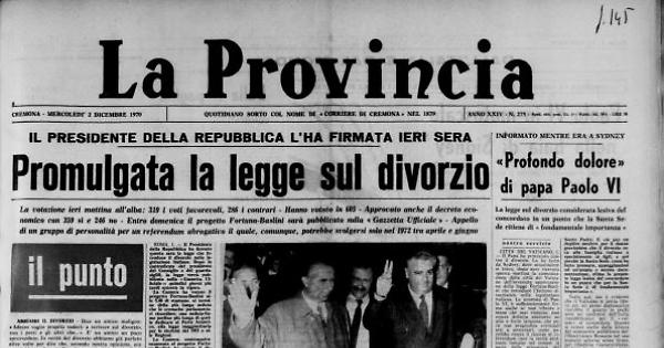 Ma scendiamo nei particolari della protesta. La sala stampa della Santa Sede ha diramato oggi un comunicato ufficiale che riproduce una dichiarazione pervenuta da Sydney. Eccone il testo: «Il Santo Padre è stato informato dell'esito della votazione di ieri sera alla Camera dei Deputati sulla legge per l'introduzione del divorzio in Italia. La notizia, benché non inattesa, ha recato profondo dolore al Santo Padre. E ciò per un duplice motivo: per il danno gravissimo che il divorzio reca alla famiglia italiana e specialmente ai figli; e poi perchè la Santa Sede, come ha fatto presente, appoggiandosi ad un'ampia e serena documentazione, stima la presente legge lesiva del concordato in un punto che per la Santa Sede è di fondamentale importanza».