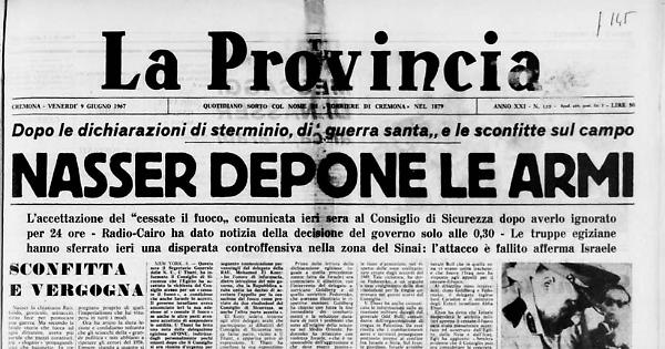 Ignora anche che Hussein ha accettato la tregua - La radio ha ripetuto più volte che ieri era una giornata decisiva - 4500 prigionieri israeliani portati al Cairo? Possiamo resistere per anni «mangiando fave» dice Nasser