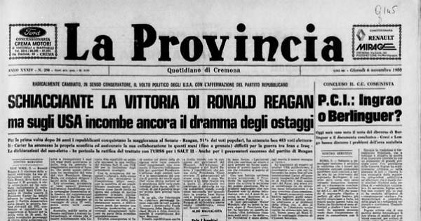 Per la prima volta dopo 26 anni i repubblicani conquistano la maggioranza al Senato – Reagan, 51 % del voti popolari, ha ottenuto ben 483 voti elettorali - Carter ha ammesso la propria sconfitta ed assicurato la sua collaborazione in questi mesi (fino a gennaio) difficili per la guerra tra Iran e Iraq
