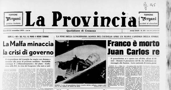 «Il 20 novembre 1975 le case civile e militare informano alle 5,25 che, secondo quanto comunicato dal medici di turno, Sua Eccellenza il generalissimo è morto per collasso cardiaco come esito finale di un'intossicazione da peritonite.