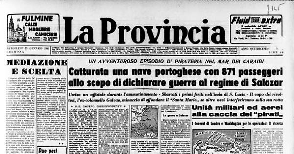 Il transatlantico «Santa Maria» aveva lasciato Lisbona il 9 gennaio e, dopo aver toccato la Spagna e Madera, aveva fatto rotta per i Caraibi e il Venezuela, dove aveva fatto scalo il 20 gennaio nel porto di La Guaira. L'ammutinamento si è verificato domenica dopo la partenza dall'isola di Curacao, nel Mar delle Antille: lunedì il «Santa Maria» giungeva all'isola di Santa Lucia, 500 km. a nord dell'isola di Trinidad, dove sbarcava numerosi feriti e ripartiva immediatamente «per ignota destinazione».