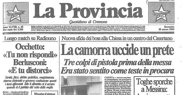 Alle 7.20 ci sono pochi fedeli: un paio di suore e alcune vecchiette che recitano il rosario in attesa dell'omelia prevista per le 7.30. Don Peppino Diana, 36 anni, nato e cresciuto in questo dimenticato paesino del casertano, arriva un quarto d'ora prima dell'inizio della funzione. Parcheggia la sua «Golf» nella piazzetta antistante la chiesa e con passo deciso entra nella parrocchia da un ingresso laterale. Prima di recarsi in sacrestia e indossare l'abito talare, si ferma qualche minuto in uno studiolo, proprio accanto all'entrata principale. Due uomini gli si parano improvvisamente davanti e senza esitare un solo istante sparano ripetutamente. Uno, due, tre proiettili, tutti in pieno volto. Il parroco stramazza al suolo in un lago di sangue. I killer si dileguano nel giro di pochi secondi.