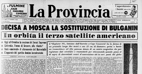 L’ "Explorer III„ lanciato dall'Esercito a Cape Canaveral ha la forma di un proiettile lungo due metri e con 15 cm. di diametro; porta a bordo un trasmettitore ad alta potenza dotato di un nastro magnetico che può registrare dati scientifici e trasmetterli per telecomando quando passa al di sopra di determinati centri d’osservazione siti in vari punti del globo