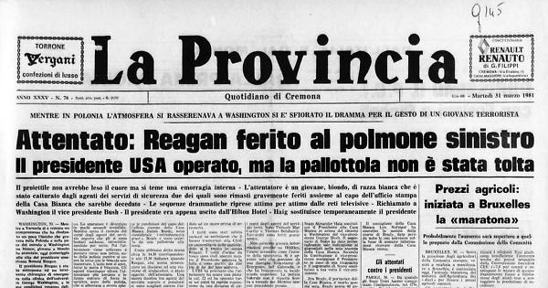 Il presidente Reagan è stato sottoposto ad un intervento chirurgico di emergenza nella clinica dell’università George Washington e le sue condizioni vengono definite buone. I medici cercano di estrarre la pallottola che lo ha ferito al polmone sinistro.