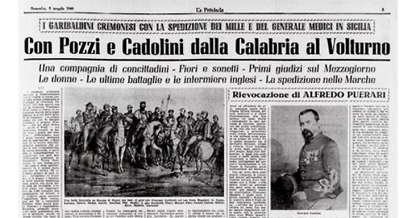 Il 23 agosto sul «Washington» i garibaldini cremonesi passano lo Stretto e sbarcano sulle coste della Calabria. A Villa S. Giovanni si accampano in una vigna... Col vapore «Tukery » sbarcano a Gioia e occupano poi Nicotera. Qui li raggiunge Garibaldi con un altro reggimento..... Il reggimento del Cadolini si porta a Caserta il 27 settembre, poi a Casanova si avvia con tutta la divisione Medici al Volturno. II battaglione nemico ci volse le spalle e; battè in ritirata. Chi avrebbe detto che un pugno di soldati senza manovra, senza disciplina, senza comando, doveva far retrocedere un battaglione che sembrava di ferro, talmente mostravasi ben ordinato? »