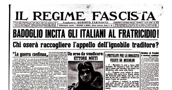 "Non vi pronuncierò un vero e proprio discorso; l'emozione che m'invade non me lo permetterebbe. Basta per noi questa presa di contatto: ba, steranno i nostri propositi e la nostra fede per alimentare la riscossa e riconquistare il popolo italiano specie quando esso si accorgerà ancor di più dell'ignobile tradimento del re e di un generale esponente della massoneria. Contro di me perchè lontano e nella impossibilità di difendermi si è alimentata una campagna scandalistica che. doveva suggestionare e irritare il popolino...."