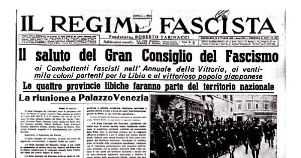 « II Gran Consiglio del Fascismo, considerato che sedici anni di azione fascista hanno totalmente trasformato le condizioni spirituali, politiche ed economiche della Libia dove le Provincie costiere, per la raggiunta efficienza produttiva e per il sempre più intenso popolamento italiano sono ormai, divenute di fatto parte integrante del territorio nazionale; ricordando le continue prove di fedeltà delle popolazioni musulmane, culminate con la volontaria partecipazione alla conquista dell'Impero, proclama che le quattro Provincie della Libia entrano a fare parte del territorio nazionale e decide che un provvedimento legislativo intervenga a definire il nuovo statuto delle popolazioni libiche, statuto che sarà esaminato in una prossima sessione del Gran Consiglio »