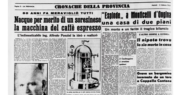 SORESINA. 4. — 50 anni fa chi passava da via XX Settembre a Soresina poteva vedere una scritta in bianco sui vetri di una bottega di coloniali e dolciumi gestita da Leandro e Savina Altieri. ha scritta diceva: « Caffé espresso cent 10 ». Chi voleva, entrava nel negozio e si sorbiva in santa pace un ottimo caffè fatto nientemeno da un grosso cilindro a cupola, tutto lucido, in bella mostra sul bancone. La gente non credeva ai suoi occhi che il caffé si potesse fare con quel l'aggeggio, abituata com'era a sorbirsi il decotto, bollito su! fuoco, in un bricco di rame. Ma dopo aver assaggiata la bevanda, ch'era uscita goccia a goccia da un rubinetto la trovava ottima! La macchina da caffé espresso era nata per merito del concittadino dott. ing. Alfredo Ponzini che può a giusta ragione definirsi il pioniere di questo prezioso apparecchio. Fu una grande scoperta ben presto le macchine da caffè espresso dell'ing. Ponzini si moltiplicarono velocemente e lo stabilimento da lui fondato ebbe un gran lavoro per far fronte alle continue richieste ...