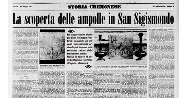 Un approfondito studio dei prof. Giuseppe Pontiroli, compiuto sui recenti rinvenimenti archeologici, impone una revisione critica della traduzione scritta. Messa in rilievo la documentazióne inerente all'epoca sforzesca