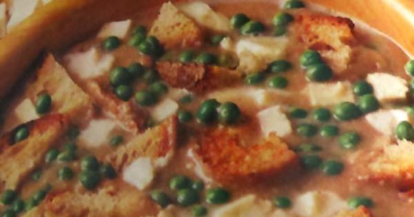 Ingredienti: 200 gr di semola d'orzo, 100 gr di formaggio, alcune foglie di menta, pane tostato, 100 gr di piselli, a piacere germogli di soia.