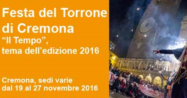Il punto di partenza sarà il tema scelto per il 2016, e cioè Il Tempo. Un connubio apparentemente insolito ma in realtà forte ed azzeccato perché il tempo, come il torrone, è passato e presente, è tradizione, è storia, è un sapere che vive e cresce attraverso il passare degli anni. Ma il tempo è anche futuro, sorpresa, sogno e innovazione, tutte le peculiarità di cui Cremona è ricca grazie proprio al suo prodotto tipico e al mondo produttivo ad esso legato. Gli eventi, gli incontri e le esperienze che si svilupperanno nella festa saranno quindi all’insegna del tempo, di cui Cremona è in qualche modo simbolo in quanto patria di Jannello Torriani, maestro orologiaio, inventore e genio del ‘500, cui la città dedicherà una grande mostra nel corso dell’autunno e la Festa del Torrone molteplici iniziative.