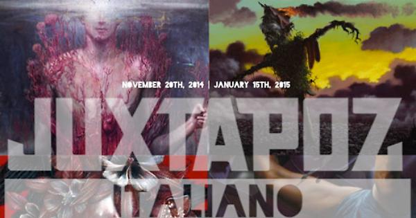 JUXTAPOZ ITALIANO riunisce i lavori di quattro rappresentanti della corrente pop surrealista italiana: Agostino Arrivabene, Fulvio Di Piazza, Marco Mazzoni, Nicola Verlato. Dopo la tappa americana di Los Angeles, la galleria Giovanni Bonelli è lieta di ospitare a Milano un progetto ambizioso che mira ad inquadrare un fenomeno già estremamente diffuso: la creazione del consenso intorno ad alcuni artisti anche grazie ai canali dei nuovi media come Facebook, Pinterest e Twitter. Così come la radio, e più in generale l'industria discografica, hanno rivoluzionato il mondo musicale rendendo la musica accessibile e consumabile alla quasi totalità delle persone, i social media stanno decretando una nuova ascesa dell'arte figurativa e, nello specifico, della pittura nel mondo dell'arte. Osservatore e, al contempo, promotore di questo fenomeno è il main partner della mostra: la rivista americana Juxtapoz della cui fondazione quest'anno ricorre il ventennale. Fin dall'inizio della sua pubblicazione nel 1994, la rivista si è posta come riferimento entro cui fenomeni artistici spontanei e underground, inizialmente solo americani e poi internazionali, venivano ratificati attraverso la loro nuova proposizione al pubblico, tramite articoli e approfondimenti. Non sembra un caso quindi che gli artisti in questa mostra siano tutti interpreti e innovatori di una tradizione italiana dell'arte: quella figurativa basata sul disegno, sulla linea che demarca i contorni e che definisce le forme. Da qui la speciale declinazione del titolo: JUXTAPOZ ITALIANO che vede insieme per la prima volta i lavori dei quattro autori italiani. Agostino Arrivabene può vantare una tecnica pittorica degna dei grandi maestri quattro-cinquecenteschi. I suoi olii su tela hanno reminescenze leonardesche intrise di visioni alla Hieronymus Bosch. Nel 2014 sarà protagonista della sezione dedicata a “Leonardo Contemporaneo” nella mostra sul grande maestro fiorentino che si terrà a Palazzo Reale in occasione dell'Expo di Milano. Fulvio Di Piazza è riconosciuto come uno degli esponenti di punta della “scuola siciliana” di pittura figurativa contemporanea. Il suo lavoro è stato recentemente esposto in una personale presso la GAM di Palermo. I suoi personaggi a metà tra l'animale e il vegetale lo rendono un protagonista indiscusso della corrente pop-surrealista. Marco Mazzoni pur vivendo ancora in Italia collabora ed espone principalmente con importanti gallerie americane (Jonathan Levine Gallery New York) e del nord Europa. I suoi volti umani, raffigurati con semplici matite colorate su carta, creano visioni oniriche di possibili simbiosi con animali e vegetali. Nicola Verlato, presente in mostra nella doppia veste di curatore e autore, è un artista eclettico e dalle mille risorse (diplomato al conservatorio, oltre a dipingere compone pezzi strumentali). I suoi ultimi lavori sono esposti da ottobre 2014 al Long Beach Museum (California) in una importante mostra sulla pittura figurativa contemporanea. Via Luigi