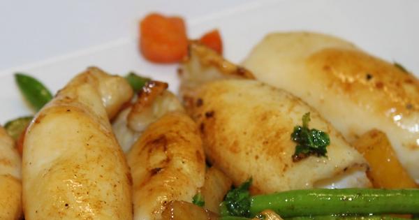 Calamari saltati in padella con verdure, nocciole tostate e zenzero