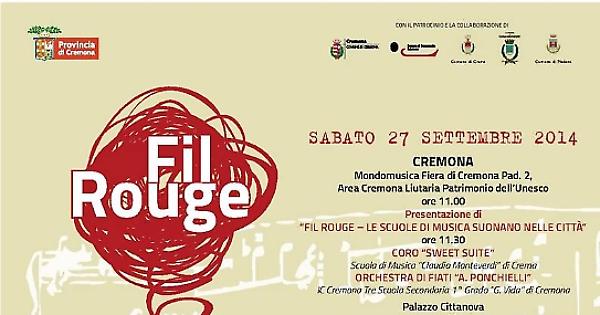 CREMONA — Si intitola Fil rouge ed è il segno grafico di un’idea: mettere in rete le esperienze di didattica della musica sull’intero territorio. E’ questo uno degli obiettivi della Rete musicale cremonese, gruppo di lavoro che unisce nato e coordinato dalla Provincia di Cremona Distretto culturale e che racchiude oltre 30 realtà impegnate in un percorso che vuole portare le esperienze musicali maturate in classe nelle piazze e strade del territorio.