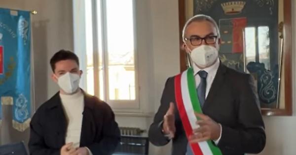 VESCOVATO - Un grande striscione appeso al municipio con la scritta “Grazie Michele. Vescovato da…brividi” ha salutato questa mattina l’arrivo di Michelangelo, il compositore e produttore musicale vescovatino Michele Zocca, al quale l’amministrazione comunale ha voluto consegnare un riconoscimento dopo il trionfo del brano - nato proprio a Vescovato - presentato da Mahmood e Blanco a Sanremo. Il premio è la medaglia dedicata a El giradur, un personaggio-leggenda del paese, un commerciante ambulante che girava ovunque, anche in altre Regioni d’Italia, in bicicletta, tipico di Vescovato. Sul retro l’immagine della Rocca.