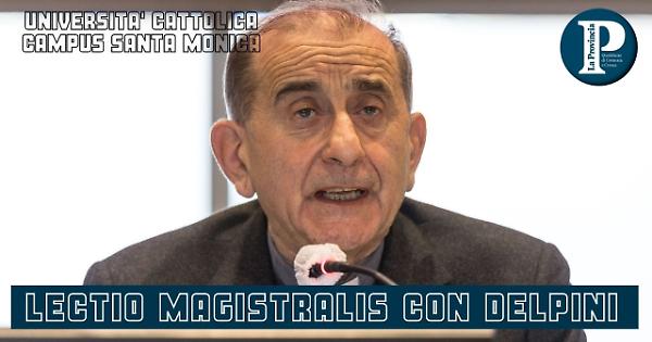 CREMONA - Entra nel campus della Cattolica nell’ex Santa Monica con ampio anticipo: «La volta scorsa che sono stato qui il cantiere era ancora in corso, ma che splendore, proprio un posto unico in cui studiare», ha affermato monsignor Mario Delpini, arcivescovo di Milano che oggi, nel primo giorno di Quaresima, ha tenuto la lectio magistralis dal titolo «Scientia Crucis». Ad accoglierlo sono stati don Maurizio Compiani, assistente Pastorale dell’Università Cattolica a Cremona, con il vescovo Antonio Napolioni e il vescovo emerito, Dante Lafranconi, il direttore della Cattolica Mauro Balordi con Matteo Burgazzoli insieme ai presidi delle facoltà di Scienze agrarie Marco Trevisan e di Economia, Anna Maria Fellegara.