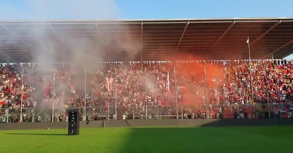Curva Sud strapiena, ma anche i Distinti non sono da meno. I giocatori vengono premiati uno a uno: lo speaker pronuncia il nome e i tifosi il cognome. Brividi grigiorossi.