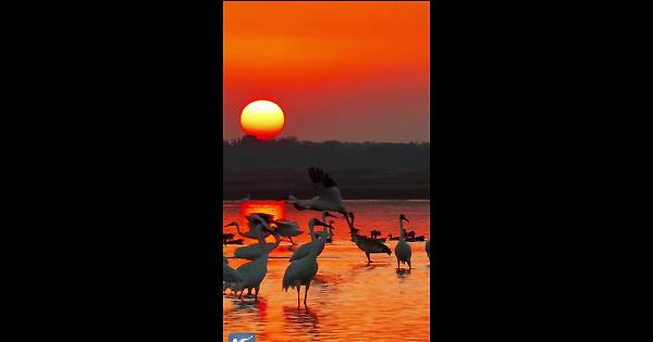 Cina, lago Poyang. Grande migrazione invernale degli uccelli