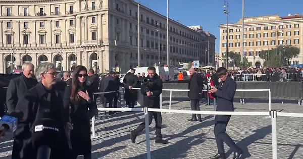 L'attrice Anne Hathaway ai funerali di Valentino, le immagini