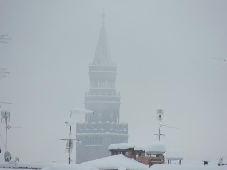 Cremona sotto una spessa coltre di neve (Pamela Mannini)