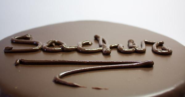 Prepara la glassa. Scalda 2,5 dl di latte di soia a fiamma bassa fino a ebollizione, poi spegni. Sminuzza finemente il cioccolato e mettilo in una ciotola. Versaci il latte di soia bollente, tutto in una volta, e attendi 30 secondi prima di lavorarlo, in modo che il composto arrivi alla giusta temperatura (se hai un termometro, deve misurare circa 50°). Usando un cucchiaio, comincia a mescolare il composto partendo dal centro, lentamente, finché gli ingredienti risultano amalgamati. Taglia il pan di Spagna, raffreddato e sformato, in 2 strati.