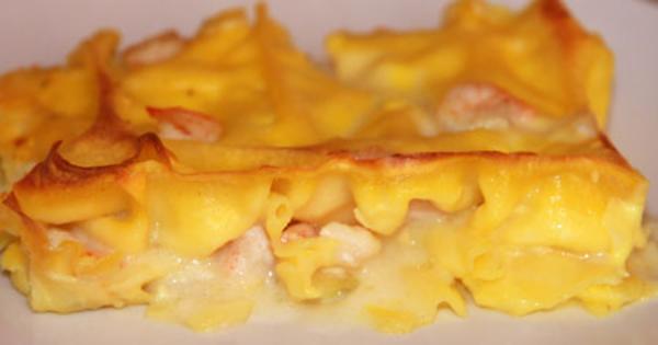 Ingredienti (per 4 persone): 250 gr di lasagne fresche, besciamella, 200 gr di filetti di sogliole puliti, 200 gr di gamberetti sgusciati, 1 bicchiere di vino bianco secco, 1 bicchierino di cognac, 1 mestolo di brodo di pesce, 4 cucchiai di olio extravergine di oliva, 2 bustine di zafferano, sale.