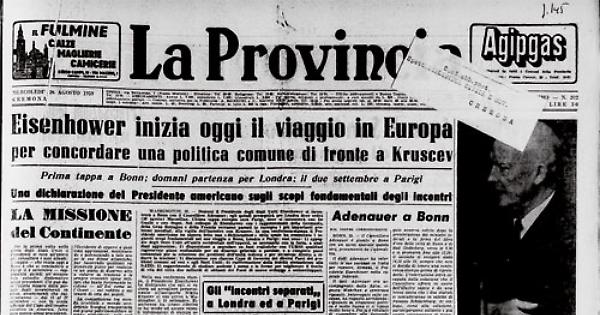 * Eisenhower inizia il suo viaggio in Europa per concordare una politica comune di fronte a Kruscev. Prima tappa a Bonn; domani partenza per Londra; il due settembre a Parigi.