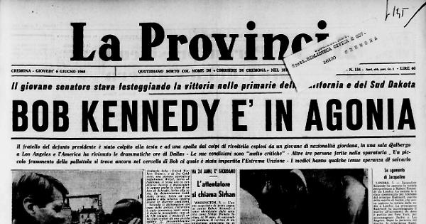 Il fratello del defunto presidente è stato colpito alla testa e ad una spalla dai colpi di rivoltella esplosi da un giovane di nazionalità giordana, in una sala d’albergo a Los Angeles e l’America ha rivissuto le drammatiche ore di Dallas - Le sue condizioni sono "molto critiche" - Altre tre persone ferite nella sparatoria . Un piccolo frammento della pallottola si trova ancora nel cervello di Bob al quale è stata impartita l'Estrema Unzione - l medici hanno qualche tenue speranza di salvarlo