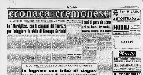 Il Condottiero, aveva chiesto dì poter salire sul Torrazzo per ammirare il panorama. A metà salita, venite fermato dal campanaro Giardini, u quale volle mostrargli il suo concerto di campane, eseguendo anche in suo onore l'inno garibaldino e la Marsigliese. Ma a metà di quest'ultima esecuzione, Garibaldi fece un cenno d'impazienza, ed esclamò: «Tralasciate di suonare quella lugubre marcia che ricorda lo eccidio di migliaia di vittime». Il ricordo di Villa Glori... Dall'alto della loggia più elevata, l'Eroe volle Osservare il paesaggio con il cannocchiale; e fissato lo sguardo verso Mantova esclamò: «Quella città ora baluardo nemico, diverrà quanto prima la nostra difesa». Scendendo, volle offrire qualcosa al campanaro, ma non trovò spiccioli e l'invitò a seguirlo in casa. Giardini rifiutò un dono ma chiese un ricordo: l'astuccio portafiammiferi che il generale teneva fra le mani.
